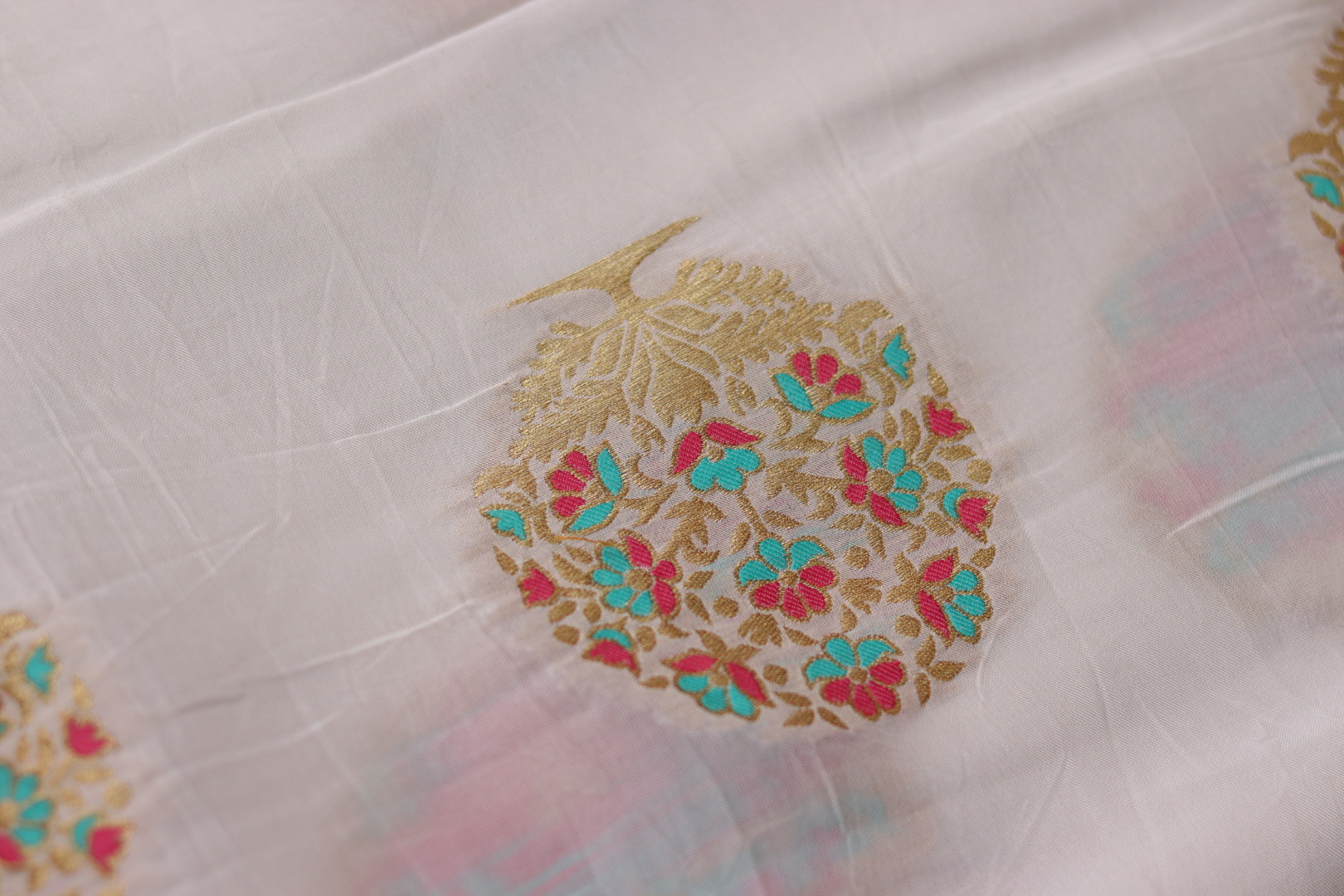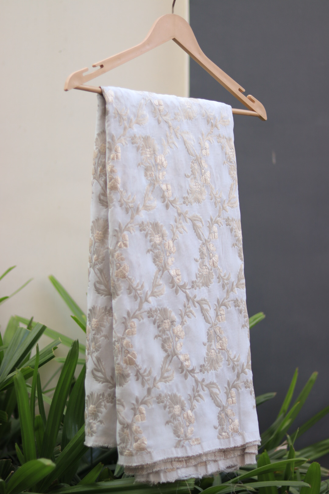 Dyeable Crush Tissue Fabric with Hand Embroidery – Elegant & Customizable