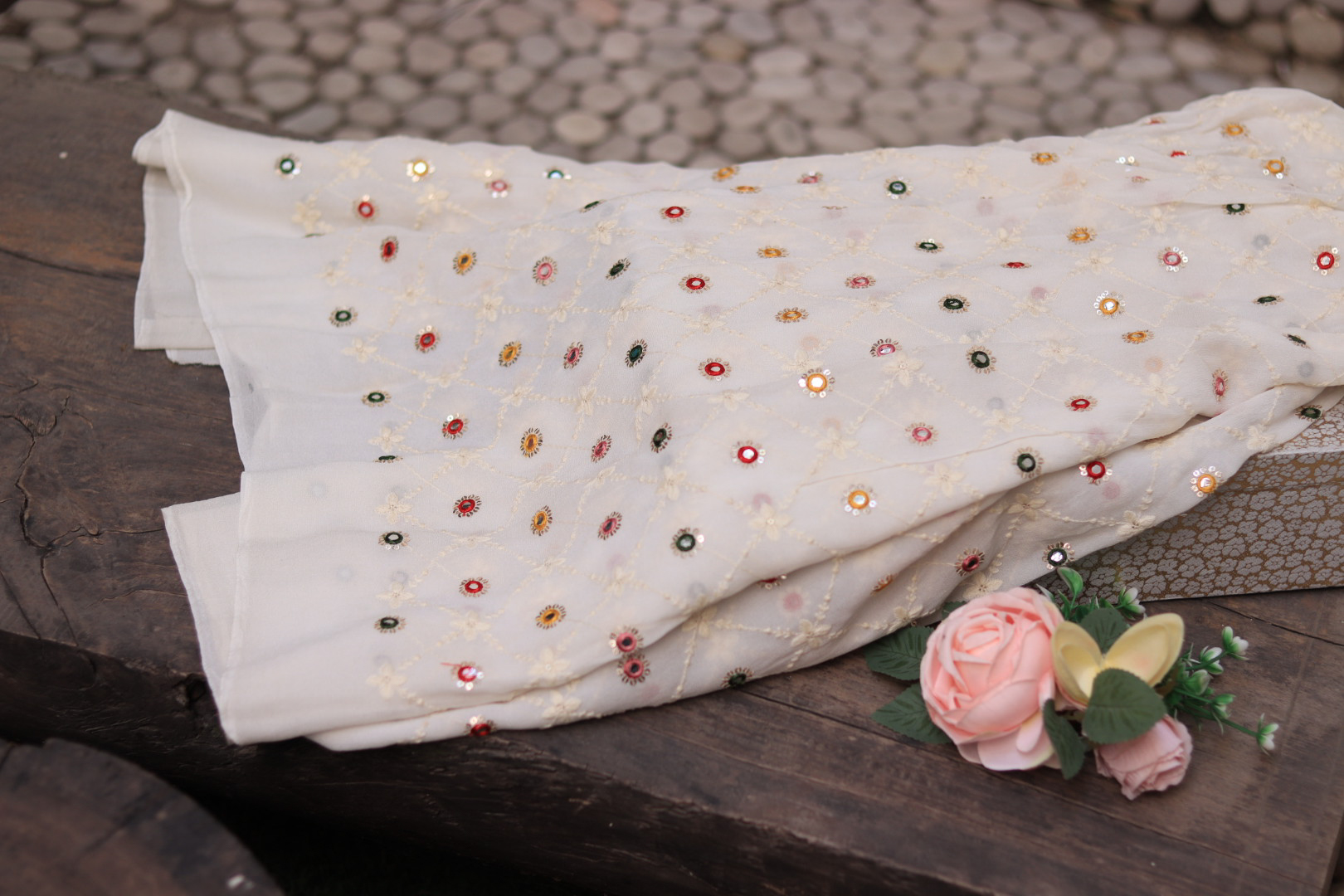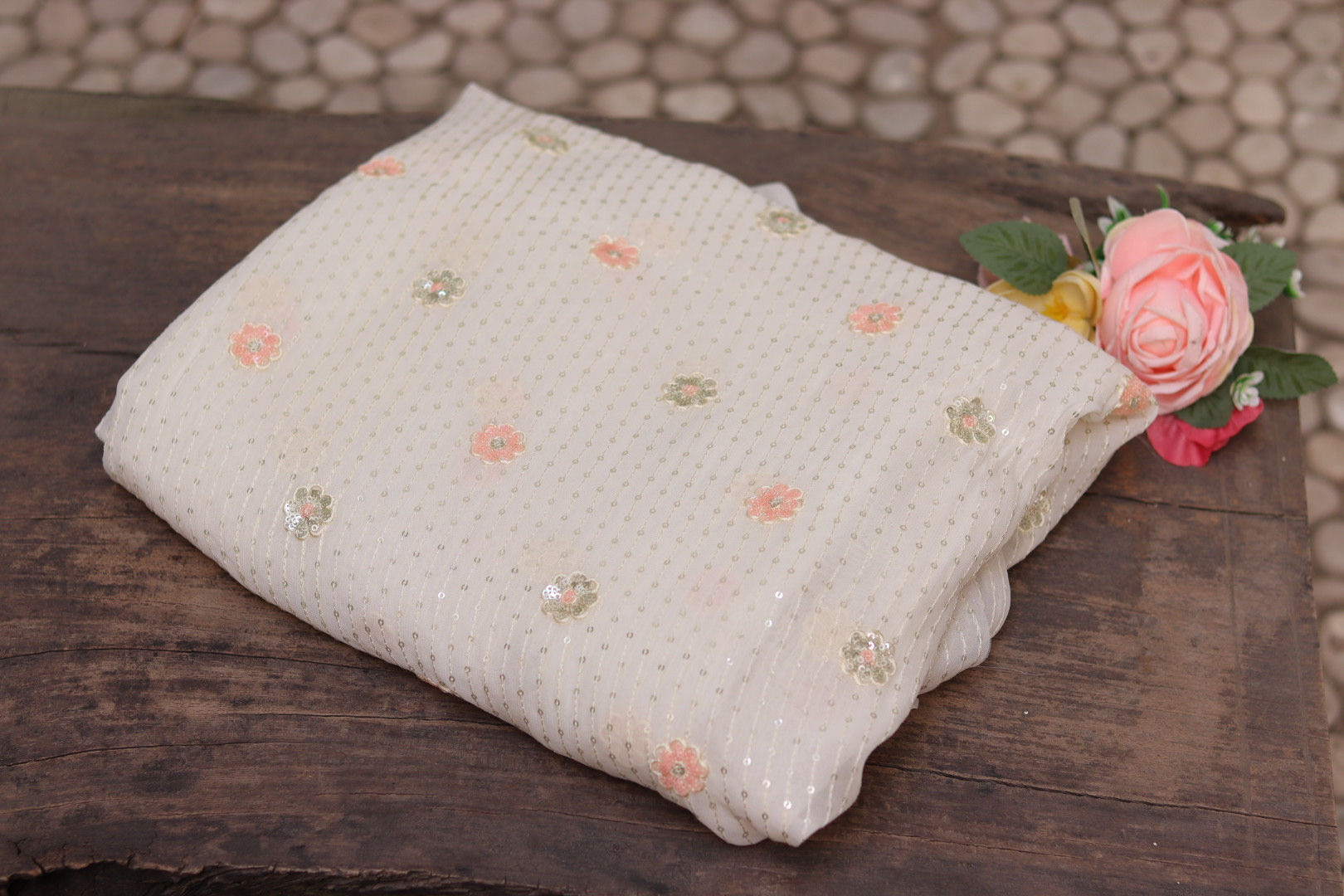 Dyeable Hand Embroidered Georgette Fabric
