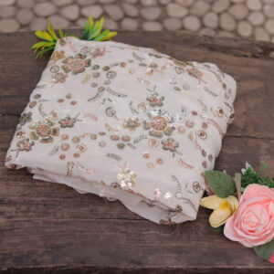 Dyeable Hand Embroidered Net Fabric