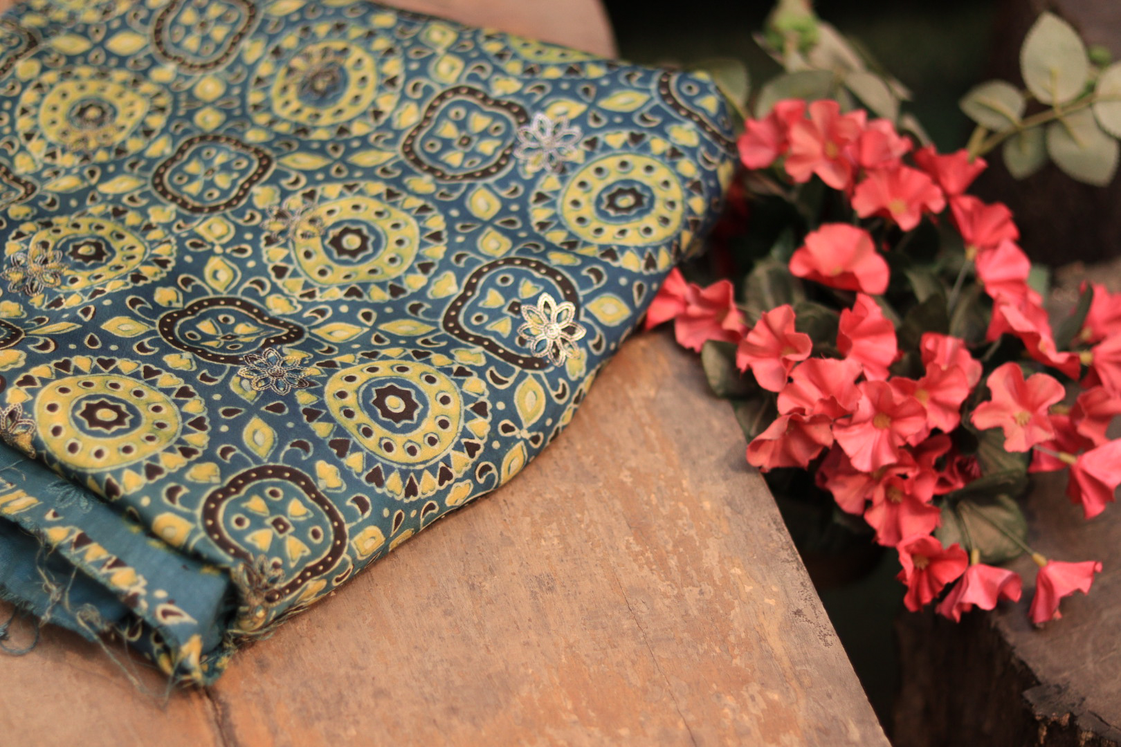 • Pattern: Ajrakh print with hand embroidery.