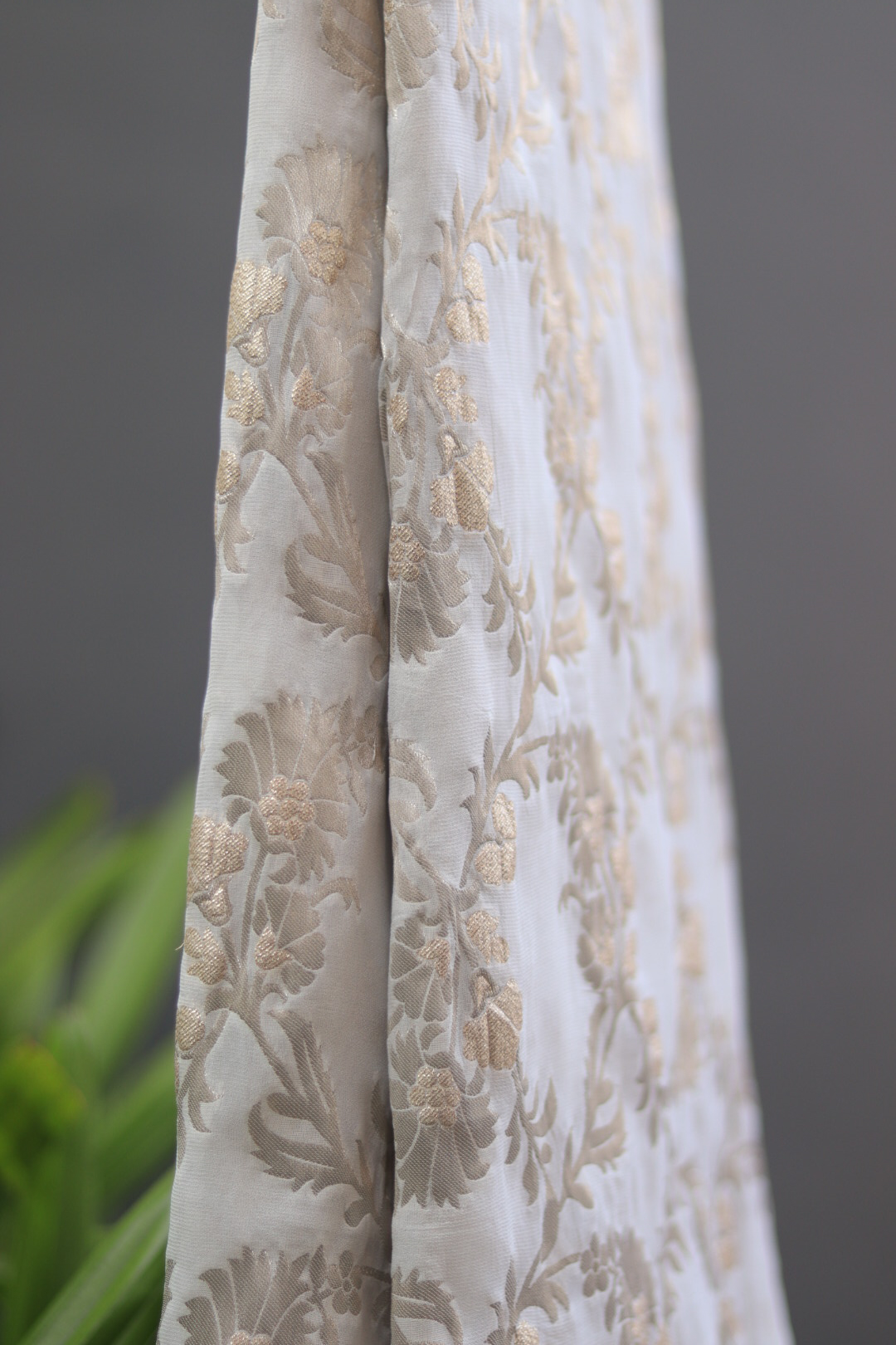A premium silk fabric with intricate brocade patterns on a dyeable base. Ideal for creating festive, bridal, or designer ethnic wear in your preferred color.