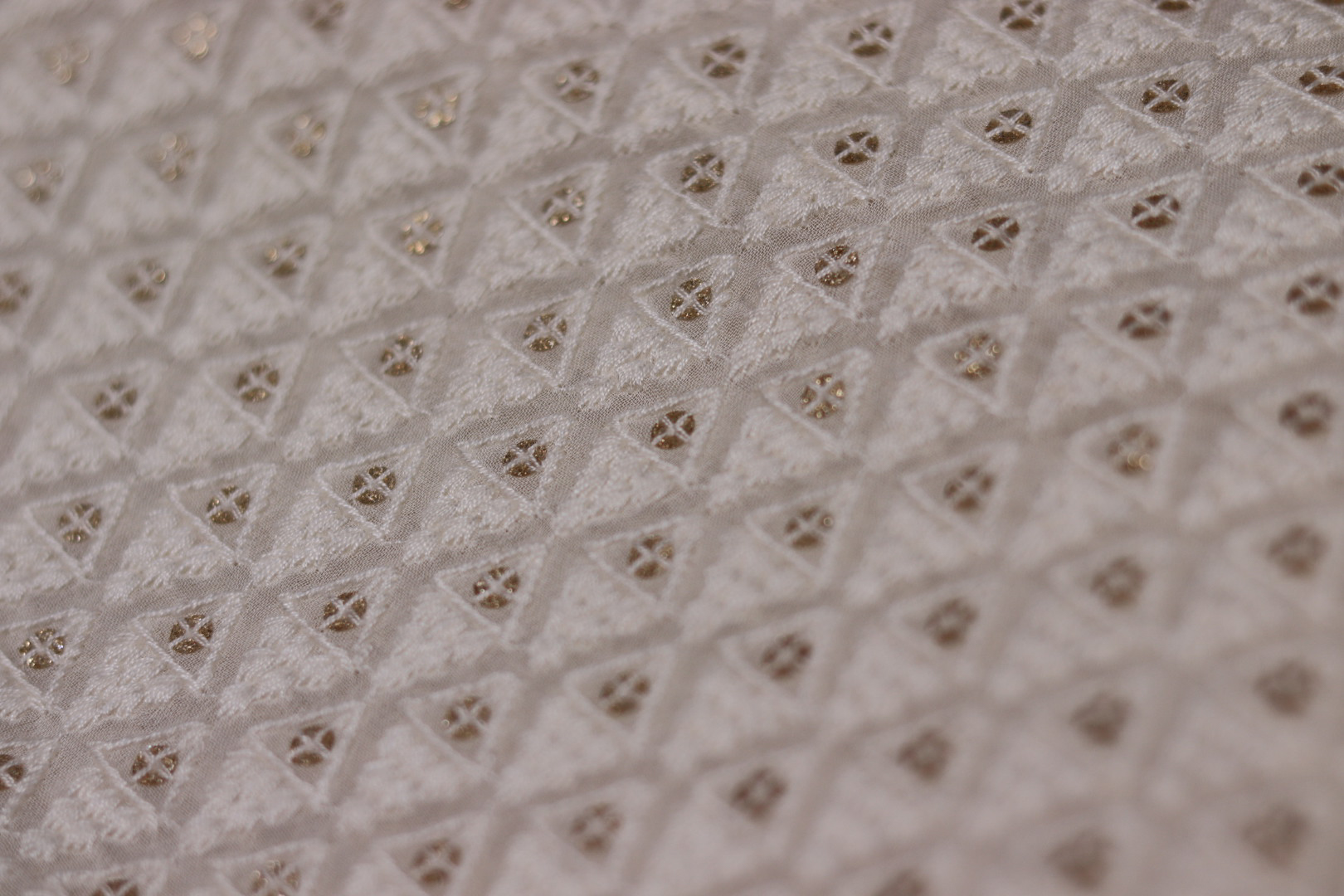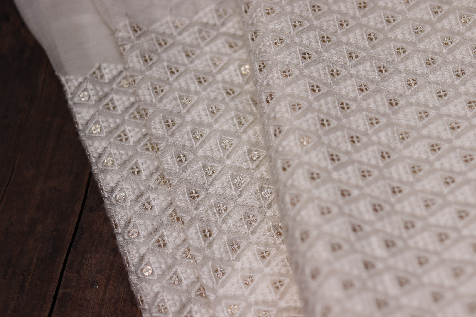 Soft georgette fabric with intricate Chicken hand embroidery on a dyeable base, perfect for crafting elegant, lightweight, and customized ethnic wear.