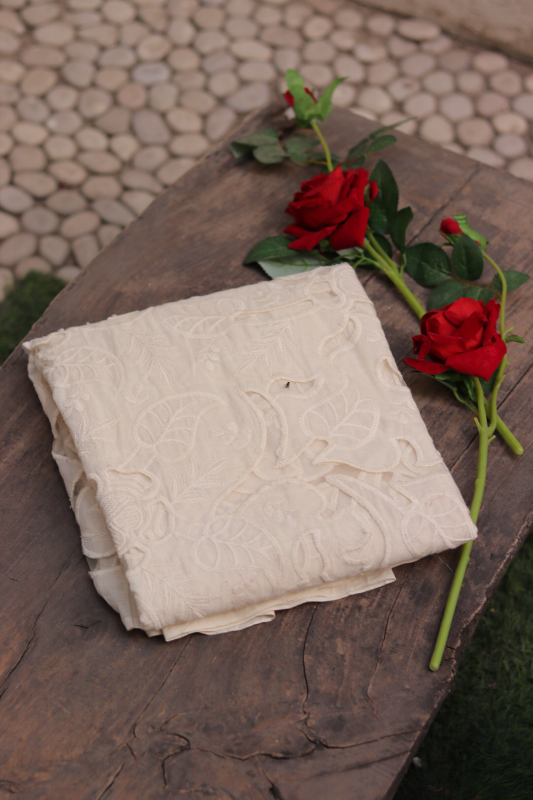 Dyeable Cotton Cutwork Designer Fabric – Customizable Elegance