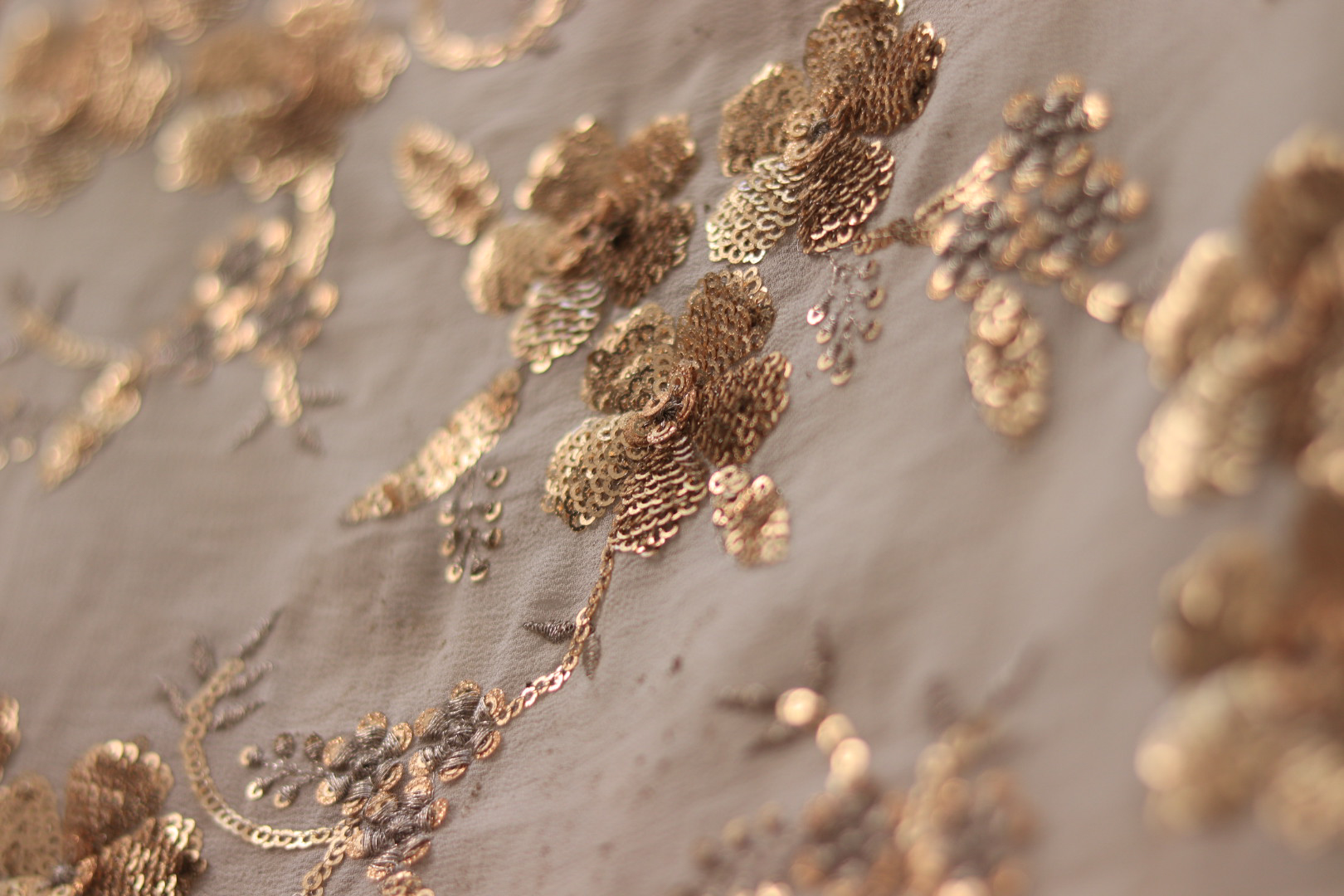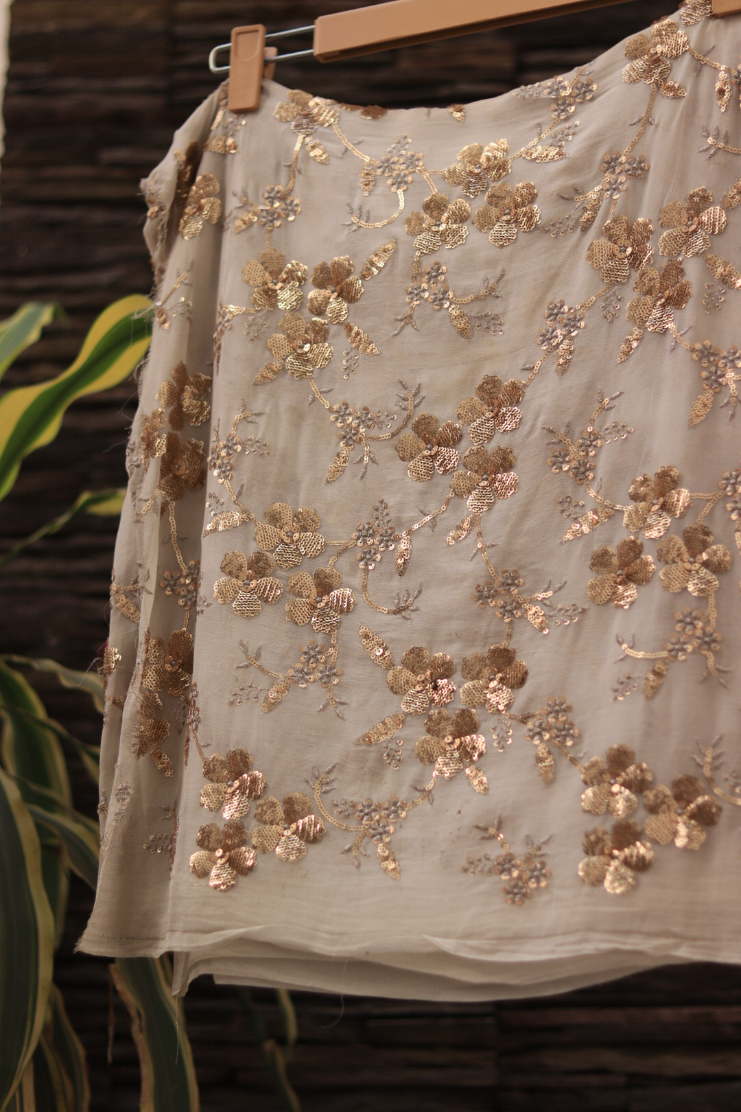 Soft and elegant georgette fabric featuring intricate hand embroidery on a dyeable base, perfect for creating customized festive, bridal and designer outfits.
