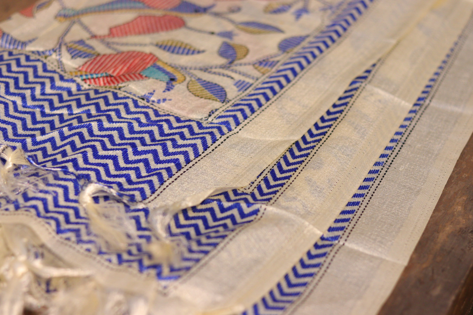 Pair this dupatta with a solid-colored kurta or lehenga to let its colors shine. Accessorize with subtle jewelry for a balanced and graceful look.
