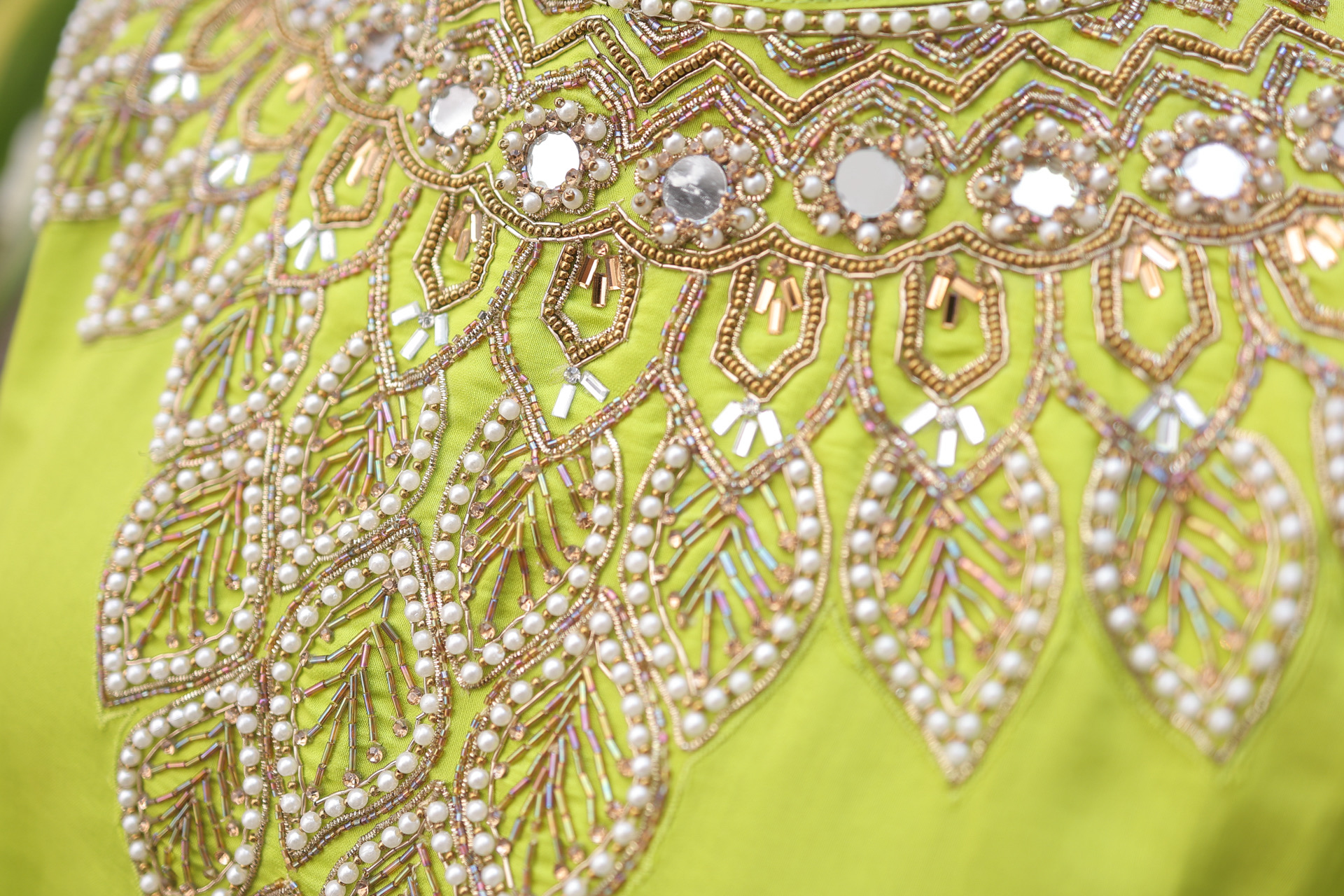Dry clean recommended to preserve embroidery and fabric finish
