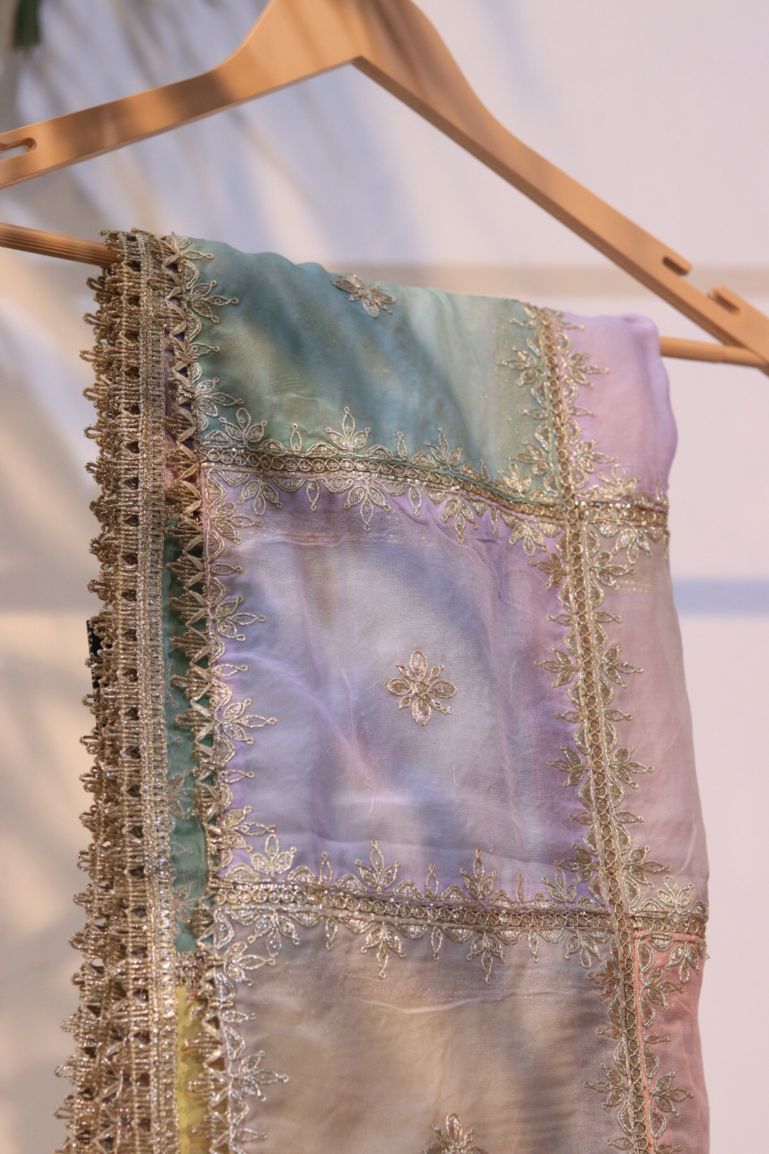 Tissue Hand-Embroidered Multicolor Pastel Dupatta