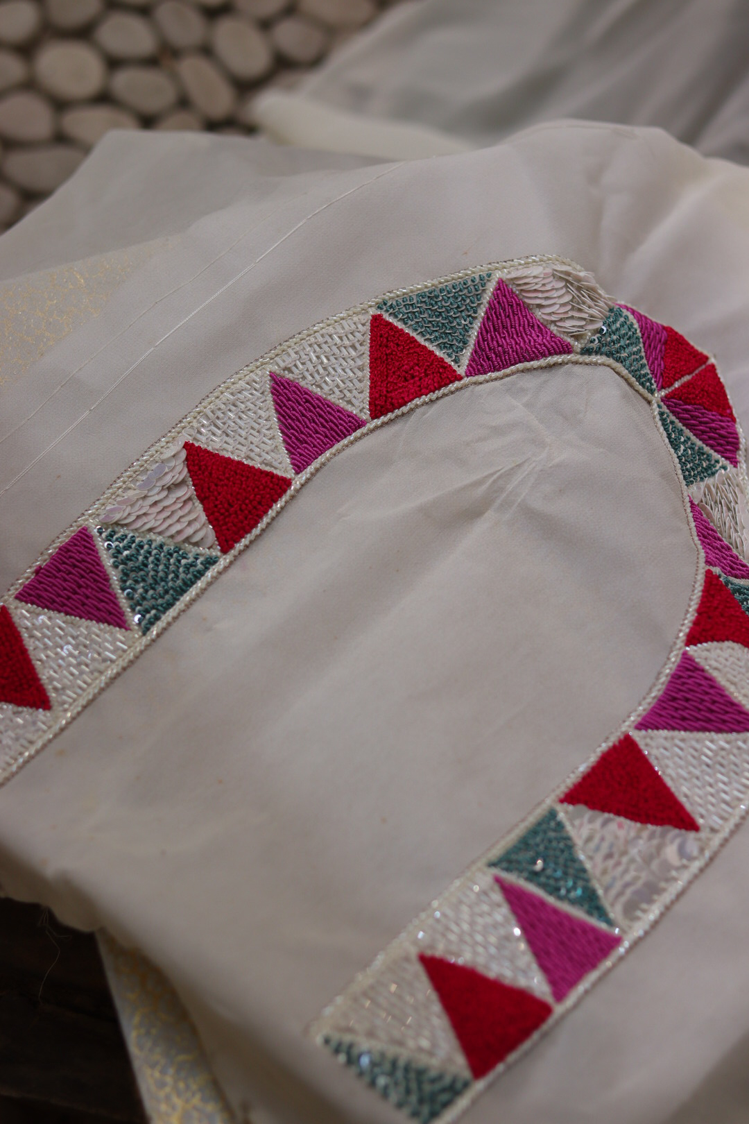 Step into refined elegance with this White Hand-Embroidered Piece. The Georgette top features delicate hand embroidery on the neckline, paired with a soft cotton bottom for comfort and ease of movement. Lightweight, stylish, and versatile, this set is ideal for casual outings, festive events, or semi-formal occasions.